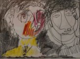 Aujourd’hui, lorsque Martín vient par exemple me montrer le portrait que d’un seul trait il a fait de son amie Eva avec ses grands yeux carrés bleus, je découvre qu’il a réussi à capter le regard de cette petite fille. De même, quand il dessine son copain Samuel entouré de flammes, avec des piques recouvrant tout son corps, en train de lancer un super ballon de basket ball, vous pouvez vous faire une idée très précise de Samuel.